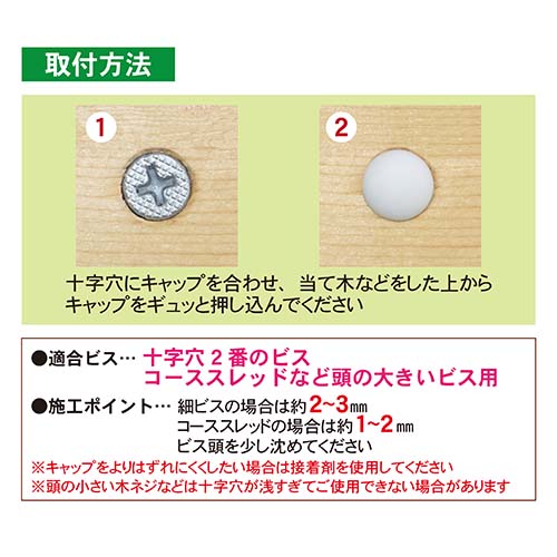圧倒的簡単施工!ビスの頭に直接はめこんで使用するビスキャップ