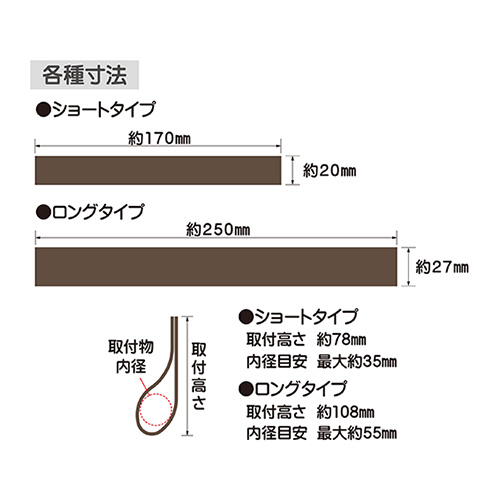材質、色、長さが異なるフックを計8種類取りそろえております。