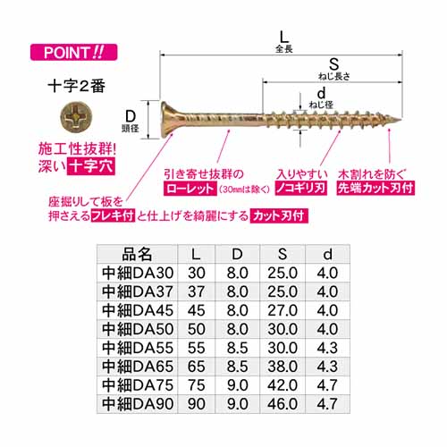 ・施工性抜群の深い十字穴
