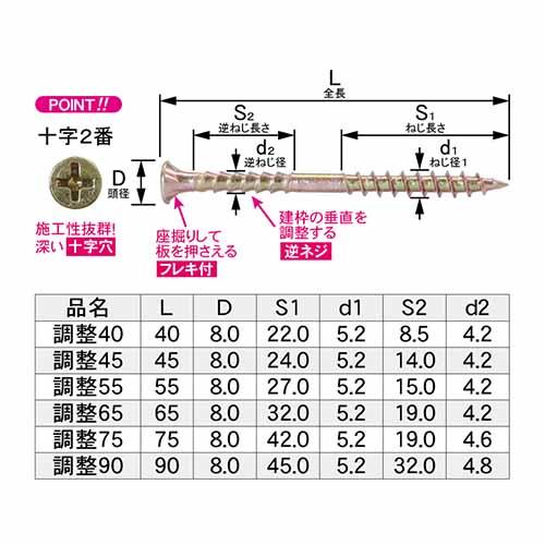 施工性抜群の深い十字穴仕様!