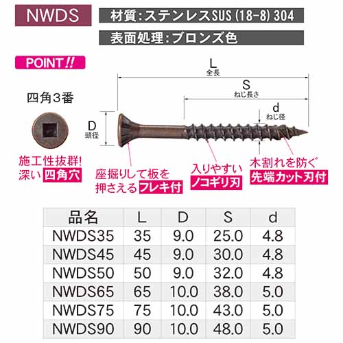 ※木材の種類、成分または環境によっては化学反応を起こし、周りが変色することがあります。薄い色の木材をご使用の場合は十分ご注意ください。