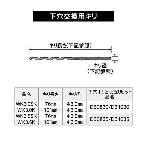 下穴キリと段掘りビット DB1030、DB0830の交換用錐です。